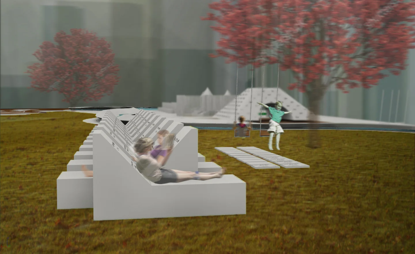 The Playgrave is the spatial manifestation of the Non- Proliferators’ innovative approach to dying and death: the Playgrave merges the ideas and functions of a playground with a graveyard . A recreational public space for all generations, that shifts the perception of death to being a joyful and tangible part of the everyday, rather than secluding it.